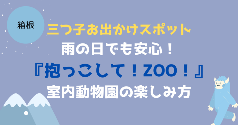 三つ子ママのみなさん、箱根で子どもと一緒に楽しめる場所を探し … 続きを読む 【三つ子お出かけスポット】雨の日でも安心!箱根「抱っこして!ZOO!」室内動物園の楽しみ方