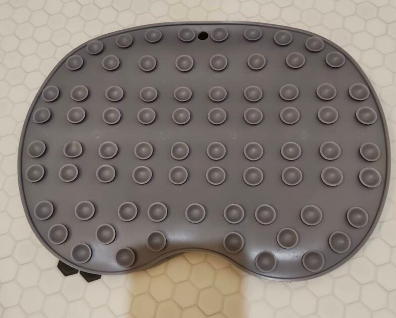 - 強力な吸盤で滑りにくい: 裏面の吸盤が、浴槽や洗い場の床にピタッと固定されるので、子どもが足踏みをしてもズレたり滑ったりしにくく安心です。