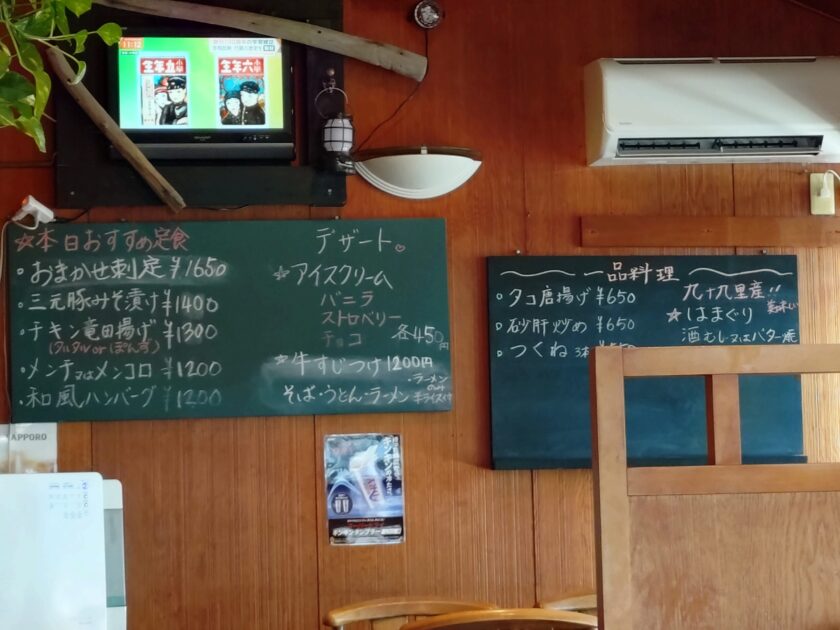 地元の漁港から仕入れる新鮮な魚介はもちろん、揚げ物やお肉の定食など、豊富なメニューが魅力。お昼は定食で一宮町グルメを堪能し、夜は居酒屋としても利用できるため、観光のプランに合わせて立ち寄れます。