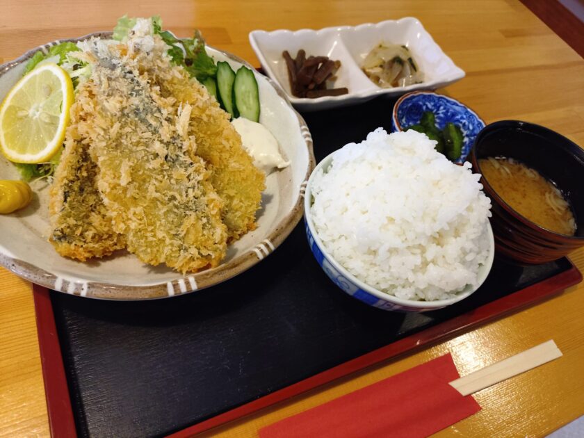 サクッとした衣の中に、身がふっくらとした肉厚なアジが!揚げたて熱々で、口に入れた瞬間にアジの旨みがじゅわっと広がります。新鮮だからこそ味わえる、臭みのない上品な味わいがたまりません。添えられたタルタルソースやレモンをかけて味の変化を楽しむのもおすすめです。ご飯がどんどん進む、間違いない一品でした。