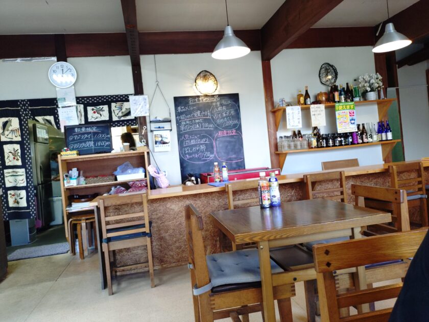 店内は、木を基調としたテーブル席があり、明るく落ち着いた雰囲気です。黒板に書かれたメニューを眺めながら、何を食べるか迷うのも楽しい時間。