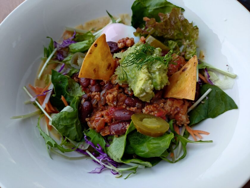 タコスのようにトルティーヤで巻かずに、具材とご飯をボウルで一緒に楽しめる、ボリューム満点のメニューです。